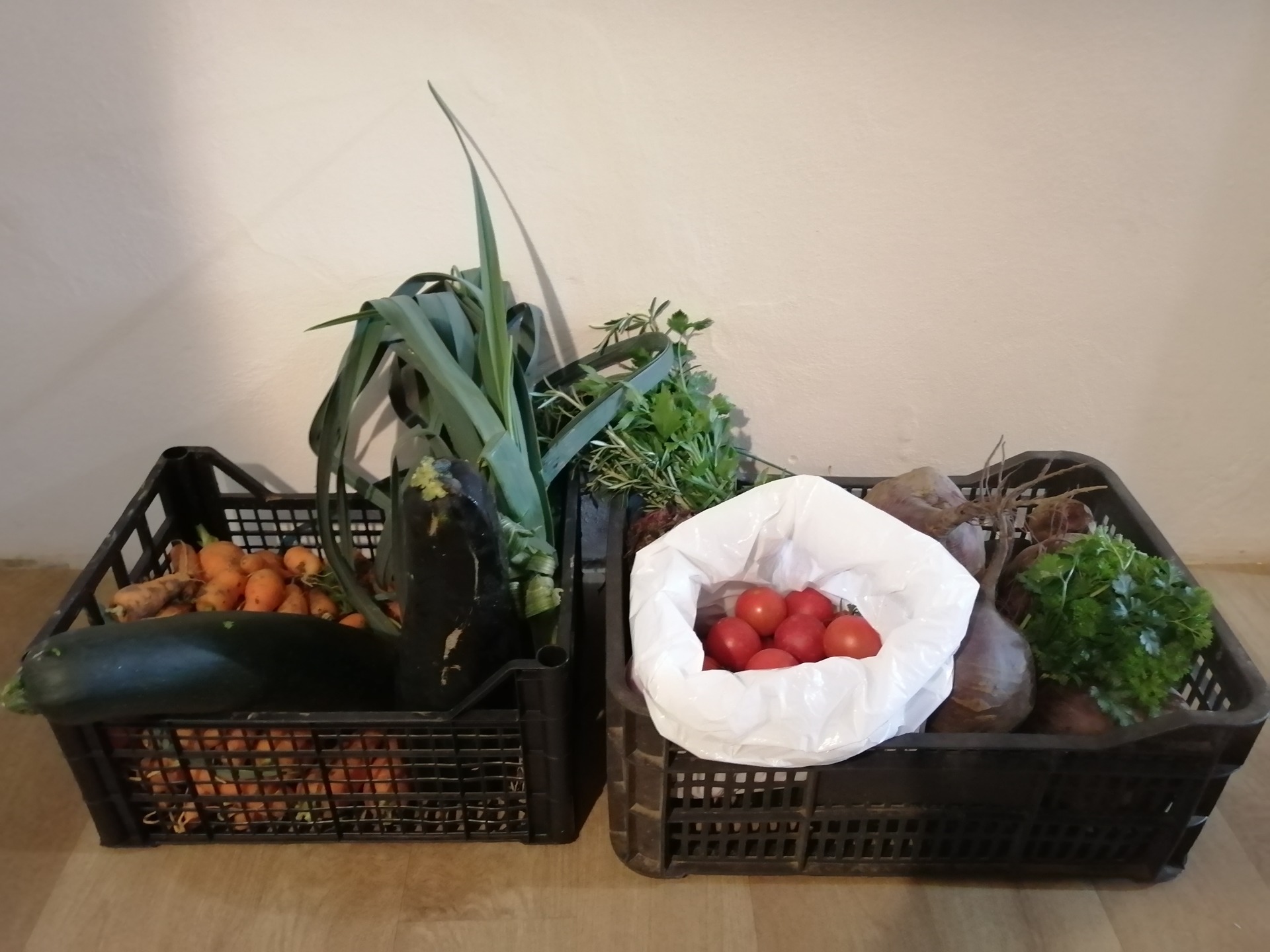 Děkujeme Anežce F. za tašku plnou vitamínů - domácí pórek, kapusta, celer.