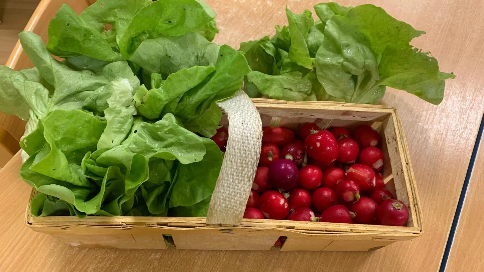 Košík plný jarních vitamínů - domácí ředkvičky a saláty od Klárky a Kubíka