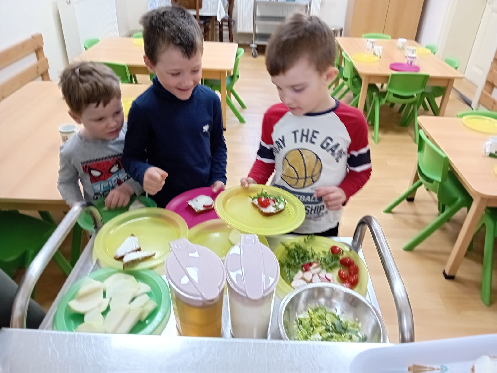Tato narozeninová hostina měla krásný přesah - děti poznávaly různé druhy ovoce, samy si vybíraly, čím si lívaneček namažou a jakým ovocem ho dozdobí. A také se učí Vojtík s Honzíkem slavnostně prostřeli v jídelně pro své kamarády, paní kuchařka vše s láskou naaranžovala a poté pomohla s úklidem. Celá slavnostní tabule byla připravena s obrovskou péčí, láskou a smyslem pro detail. Byl to opravdový zážitek pro oči i pro chuťové pohárky.